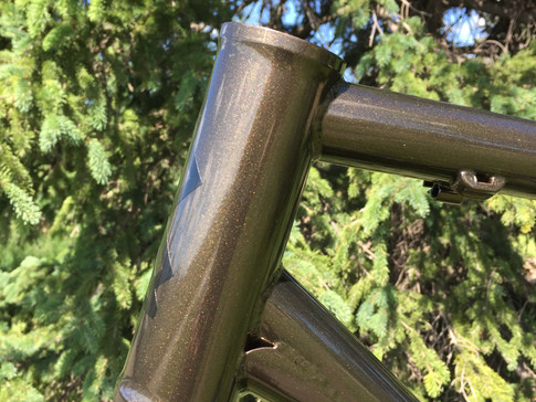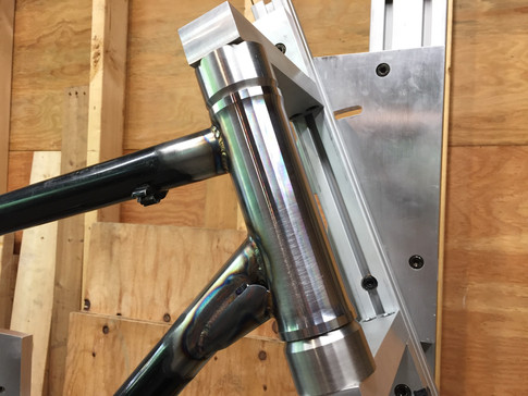 This classic frame was a favourite of its owner, however, they wanted to be able to use more modern forks and ride more aggressive trails more comfortably. To achieve these goals, a new head tube was necessary. A 44mm head tube was used and installed at a slacker angle.